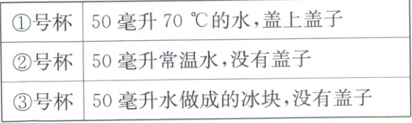 【实验一】小科在桌子上放了3只大小相同的杯子(如下图),此时的室温为20℃。