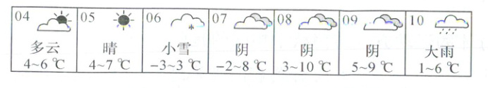 探究三:下图是小科在12月其中一周的天气观测记录,请根据下图回答问题。(20分)
