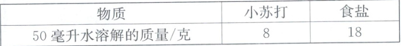 24. 比较下表中小苏打与食盐的溶解能力,下列说法正确的是(