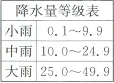 8. (接上题)根据右表所示的降水量等级表可知,这天的降水量等级是(
