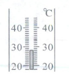 $\degree C$。小科没及时记录当天的最高气温,请观察右图气温计上显示的温度,帮小科填写完整。这天的最高气温写作28℃