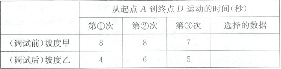5. 小科调整轨道坡度,调试后测得小球在轨道上运动的时间,前后两组数据如下: