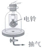 4. 如右图,电铃通电后放在玻璃罩内,将内部空气慢慢抽出,我们会听到电铃的声音(