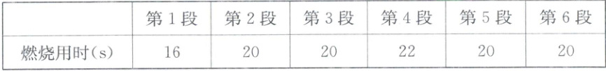 4. (义乌市)小科将燃香均匀分成6段,每段燃烧所需时间如下表所示,下列说法最合理的是(
