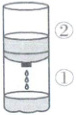 5. (三门县)小科利用矿泉水瓶设计了一个能计时的简易水钟如右图,如果他在①瓶上标出时间刻度,则该水钟是一个(
