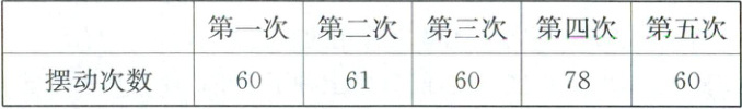(2)摆做好后,小科在1分钟的测试过程中,获得了如下表所示的数据。
