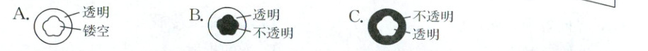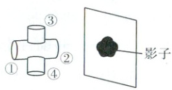 (2)小科的作品可以改变光的传播方向,可以从③或者④处反射出来。想要让光线从①进,从④出,请在上图作品内部结构中画一面镜子,并把光的传播路线补充完整。(1分)