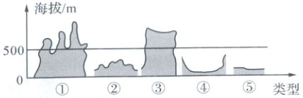 9.B 解析:示意图中,①表示山地,②表示丘陵,③表示高原,④表示盆地,⑤表示平原。