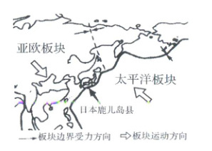 4. 火山性地震容易造成岩层发生不同程度的改变,带来持续性危害。小科查阅资料后发现鹿儿岛县处于太平洋板块与亚欧板块的交界处(如下图),板块运动十分活跃。为了研究地震的成因,小科利用塑料盒和泥土开展了实验探究。