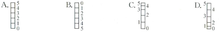 (3)如右图甲,小科制作了受水型水钟,经过反复测试并在水钟一侧标记了 5 分钟的时间刻度。下列选项中,刻度标记正确的是(