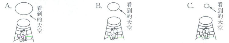 1. 在井底(无水)中央有只青蛙,它可以看到的天空范围合理的是(