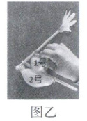 (2)如图乙,捏1号气球带动前臂弯曲,此时2号气球模拟的是大臂外侧肌肉处于