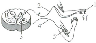 (3)图示中的 5 是指手指触碰到钉尖时会做出缩手反应,以保护手指不受伤害。这个缩手“指令”是(
