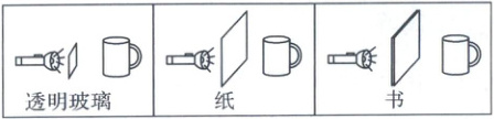 (2)小科用手电筒分别照射透明玻璃、一张 A4 纸、一本书,依次观察杯子的细节,这是为了研究手电筒的光能否通过