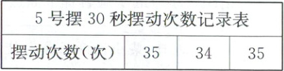 (4)小科对 5 号摆进行了测试,数据如右下表。
