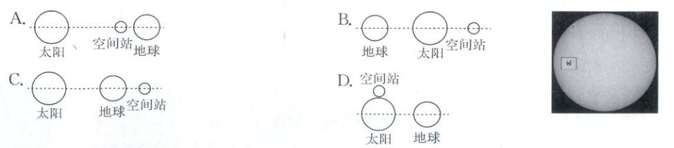 )可以正确表示太阳、地球、空间站三者的位置关系。
