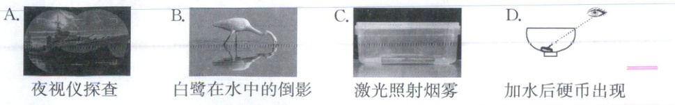 2.D 解析:由于光的折射,加水后碗中的硬币能看见。