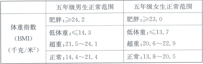)。解析:体重指数=体重(千克)÷[身高(米)×身高(米)];小科可以通过体育锻炼、少吃荤菜多吃蔬菜来减轻体重。