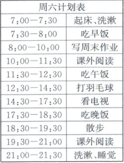 15. 小余为自己制订了一张周六活动计划表(见右表),同学们根据健康生活的知识给他提出了一些建议,你认为以下不可取的是(