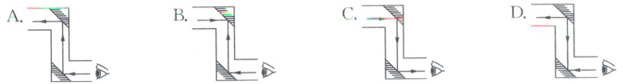 4. (杭州市临安区)右图为某同学自制潜望镜的透视示意图,该同学在纸盒上开了 a、b、c、d 四个孔。可以作为“窥测口”的是(