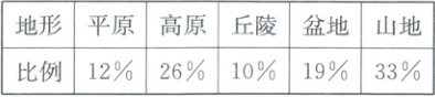 2.D 解析:从表中可以得知我国地形以山地和高原为主,地形复杂多样。