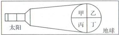 (4)如右图,用手电筒代表太阳,把玩具球当作地球,甲、乙、丙、丁4个区域中处在黑夜的是______