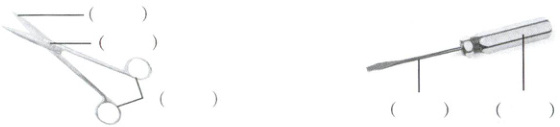 剪刀:阻力点 支点 用力点(从上到下) 螺丝刀:轴 轮(从左到右)