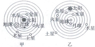 9.C 解析:甲图学说是哥白尼提出的“日心说”,乙图学说是托勒密提出的“地心说”,“地心说”的提出时间要早于“日心说”,两种学说都认为地球是球体。