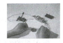 10. 如右图所示,小科用电动机的一部分、导线、磁铁等组装而成,电动机这一部分(图中箭头所指)的名称是