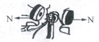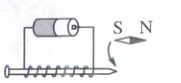 13. 当小磁针靠近电磁铁的钉尖后偏转方向如右图所示,可以判断电磁铁的钉帽是(