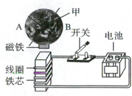 (5)接通电流,地球仪悬浮,磁铁的下端是N极,此时电磁铁上端是