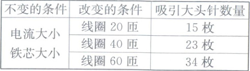 20. 小科从研究电磁铁磁性强弱与线圈匝数的关系实验记录表中,能得出“线圈匝数越多,电磁铁磁性越强”的依据是(