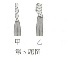 5. 乙的接法更合理,在两根导线裸露部分长度相同的情况下,图乙接法接线后,衔接部分导线横截面积大、长度小,电阻较小,与图甲接法相比对电流的阻碍作用更小。