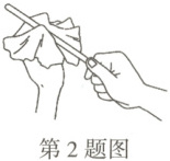 2. (教材正文改编)如图所示为小红同学做的摩擦起电实验,她用丝绸摩擦玻璃棒使得物体带电,摩擦后的玻璃棒带