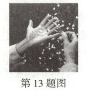 13.物理课上老师为同学们表演了神奇的魔术“吸”纸大法:如图所示,老师提前在左手掌心粘上塑料保鲜膜,两手互搓后可以隔空将碎纸屑“吸”起来,下列分析正确的是 ()