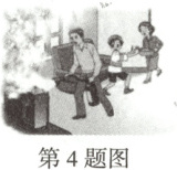 4. 如图为小明家里电视机着火的情境,小明爸爸使用灭火器灭火前,他应该先