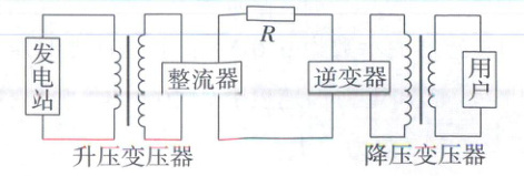 D.直流输电过程的总功率$P_{总} = \frac{n_2^2U_1^2}{n_1^2R} - \frac{n_2n_3U_1U_2}{n_1n_4R}$