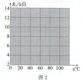 (1)根据数据在图 2 坐标系中绘制 $ R_T - t $ 关系图线,观察发现温度越高,$ R_T $ 随温度变化越