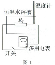 ① 将热敏电阻与温度计固定于水浴槽中,连接电路如图 1。