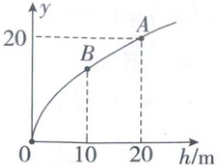 3. 如图所示是测量某物体做自由落体运动后得到的图像,取竖直向下为正方向,图像的横坐标为下降的位移 $h$,图像纵坐标满足 $y = k\sqrt{h}$,已知重力加速度 $g = 10m/s^2$,则下列说法正确的是