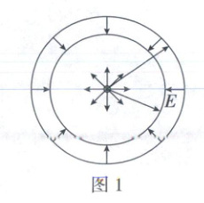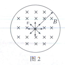 3. 一放射源可向四周发射速率为 $ v $ 的 $ \alpha $ 粒子,为了防止辐射危害,某同学设计了两种约束粒子的方案。如图 1,以放射源为圆心,在圆环区域内加均匀辐向电场,电压大小一定,方向指向圆心;如图 2,以放射源为圆心,在圆形区域内有垂直纸面的匀强磁场。已知图 2 磁场区域半径为 $ R $,则最小电压与最小磁感应强度的比值 $ \frac{U}{B} $ 为(