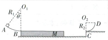 滑块从$A$到$B$,由动能定理知$mgR_1(1 - \cos\theta)=\frac{1}{2}mv_B^2-\frac{1}{2}mv_0^2$②(2分)