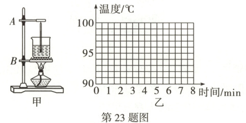 23. 实验小组的同学们用如图甲所示的实验装置进行“探究水在沸腾前后温度变化的特点”实验。