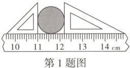 1. 小明用一把直尺和两个三角板测量一枚衬衫纽扣的直径,如图所示,则该纽扣的直径为