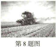 8. 安徽是农业大省,在“三夏”时节,各地会进行小麦收割工作,如图是农机手们驾驶收割机驰骋在麦浪中的情景. 若收割机以 3 m/s 的速度在田地里匀速直线行驶 720 m,则所用的时间是