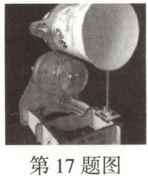17.D 【解析】留声机发出的声音在气体、液体和固体中均可以传播,A错误;老师说话的声音越大,即响度越大,指针振动的幅度越大,与振动频率无关,B错误;隔壁班的同学关闭教室门窗是在传播过程中控制噪声,C错误;留声机可以在塑料杯外壳上留下波浪式刻痕是因为声音具有能量,D正确.故选D.