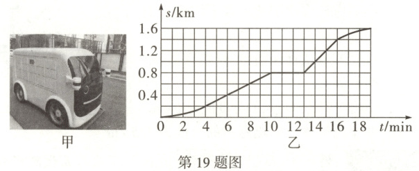 19. 如图甲所示为正在工作的无人配送车,配送车全程沿直线行驶,如图乙所示为配送车运动的s-t图像,下列分析正确的是(