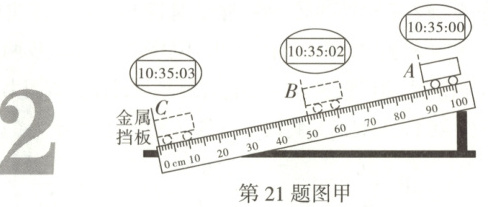 21. 在“测量平均速度”的实验中,学习小组使用一个带有刻度尺的长木板作为斜面,搭建实验装置如图甲所示.