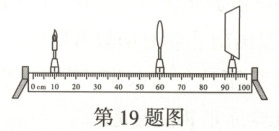 19.D【解析】更换前,凸透镜的焦距为20cm,点燃的蜡烛在光具座上10.0cm刻度线处,物距为60.0cm - 10.0cm = 50.0cm,此时物距大于二倍焦距,所以在光屏上可呈现烛焰清晰倒立、缩小的实像,成像原理与照相机相同,A、B错误;先用焦距为20cm的凸透镜进行实验,在光屏上得到清晰的像,后换用焦距为10cm的凸透镜继续进行实验,在蜡烛和凸透镜位置不变的情况下,光提前会聚了所以应该将光屏向左适当移动,才能在光屏上呈现清晰的像;若凸透镜、光屏位置不动,此时应该通过减小物距来增大像距,即将蜡烛向右适当移动,在光屏上可再次成清晰的像,C错误,D正确.故选D.