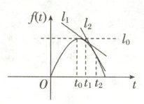 由题图可以看出直线$l_{1}$的倾斜程度小于直线$l_{2}$的倾斜程度,说明曲线$f(t)$在$t_{1}$附近比在$t_{2}$附近下降得缓慢.